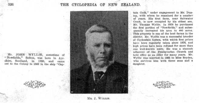 | From the Cyclopedia of New Zealand a record of John Wyllie & his progress from his arrival in New Zealand in 1868 | |||||||||